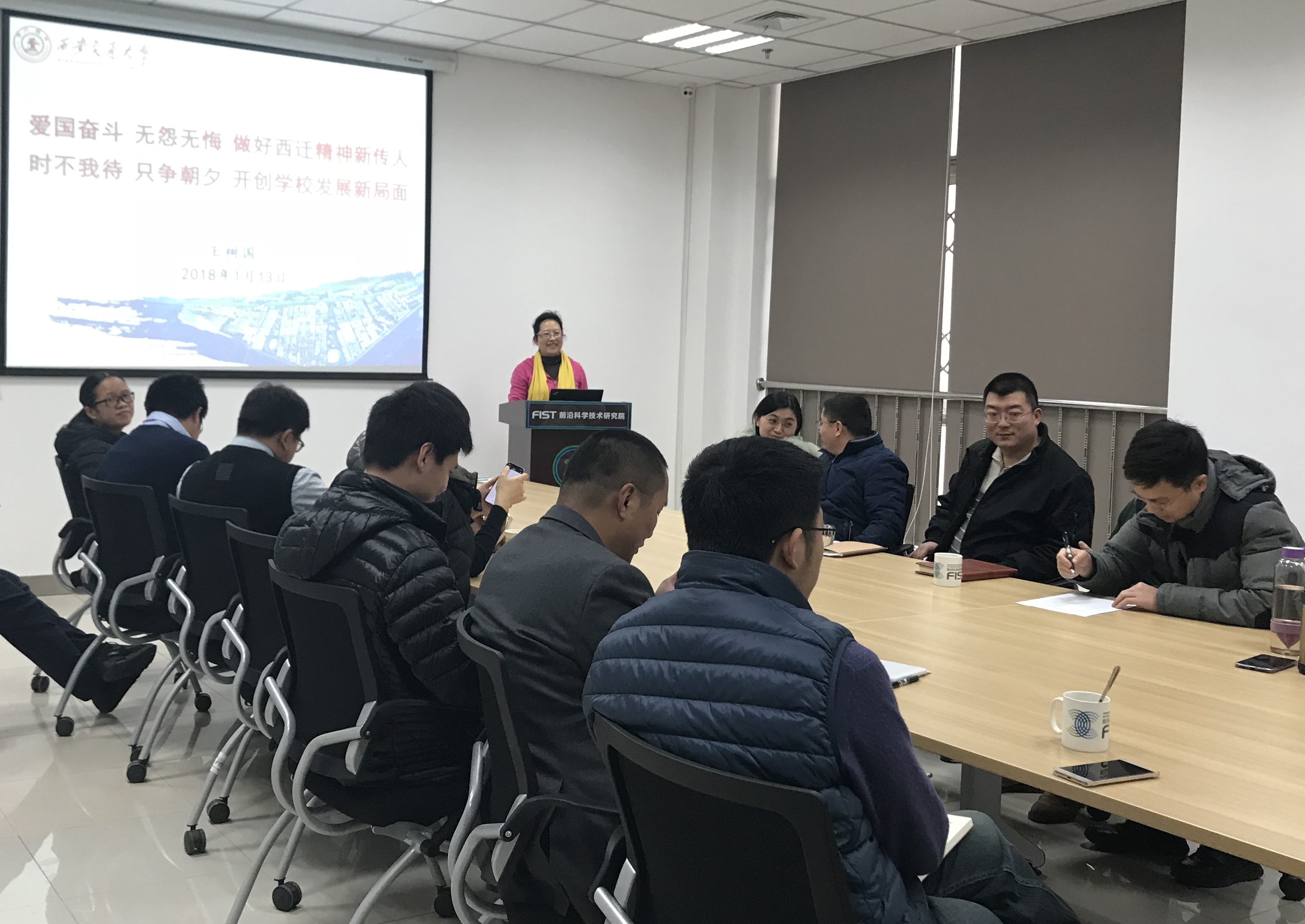 孟祥丽副院长首先向与会人员介绍了学校寒假工作会议的情况,传达了王树国校长在学校寒假会议上的讲话精神。王树国校长在寒假工作会议所做的“爱国奋斗、无怨无悔,做好西迁精神新传人;时不我待、只争朝夕,开创学校发展新局面”报告,从人才培养、科学研究、师资队伍建设、国际合作、服务社会和发展资源汇聚与综合改革等方面简要介绍了学校 2017 年的工作业绩,从学科评估结果入手重点介绍了学校对不同学院发展的要求和任务。最后,王校长 部署了 2018 年的重点工作。