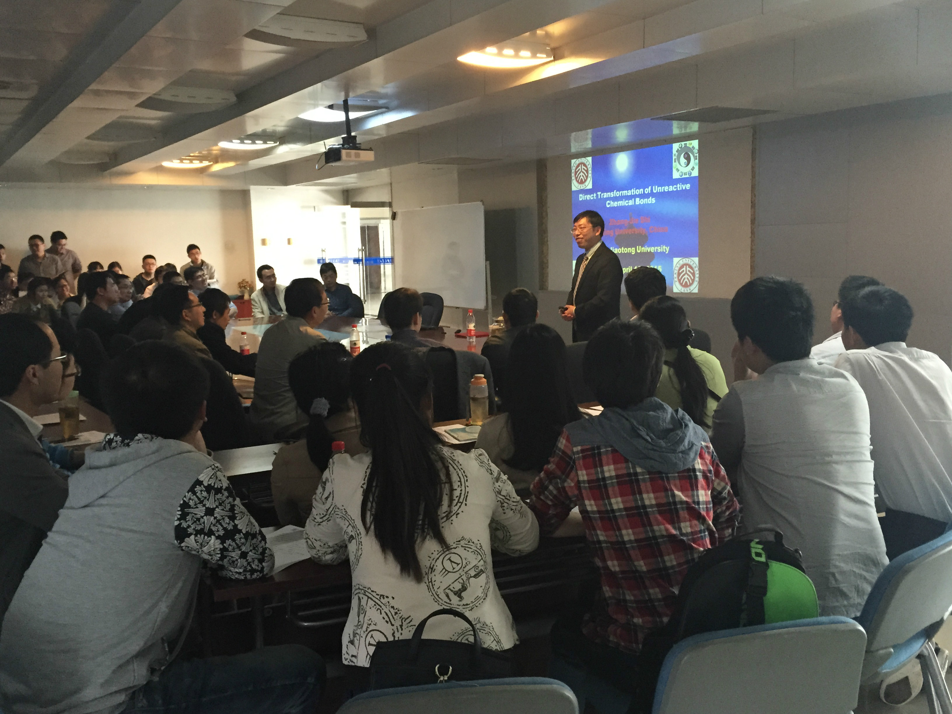 在讲座中,施章杰教授主要介绍了他的课题组十年来在惰性化学键催化转化方面的代表性成果。传统有机化学反应主要是基于活性官能团的转化,相对而言,广泛存在但相对惰性的碳氢键、碳氧键等的转化代表了更加绿色和有效的化学反应途径。施教授课题组在这些挑战性课题研究方面取得多项重要突破,为进一步发展经济、清洁的有机合成提供了新思路和新方法。