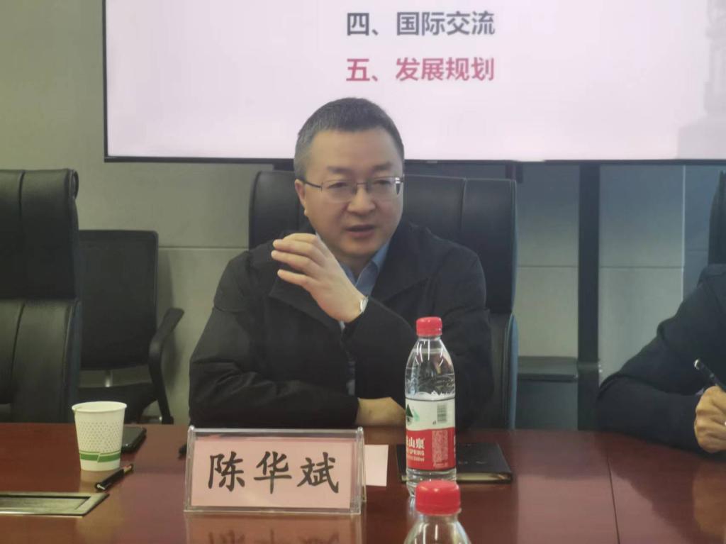 4月19日上午,自贡市政府副市长陈华斌一行来bwin考察调研。自贡市政府副秘书长蔡国银、经济和信息化局副局长李旭、科技局机关党委书记李慧丽、投资促进局机关党委书记周敏,必赢网络游戏平台副院长何刚、院长助理李国平陪同调研。