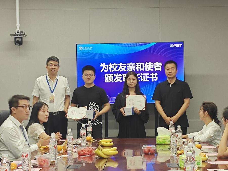 赵卫滨、赵永席为学院校友亲和使者颁发聘任证书,望各位亲和使者认真履行职责,与班级同学保持紧密联系,及时传递母校的最新发展动态,发挥好桥梁纽带作用,共同筑牢交大校友的精神家园。