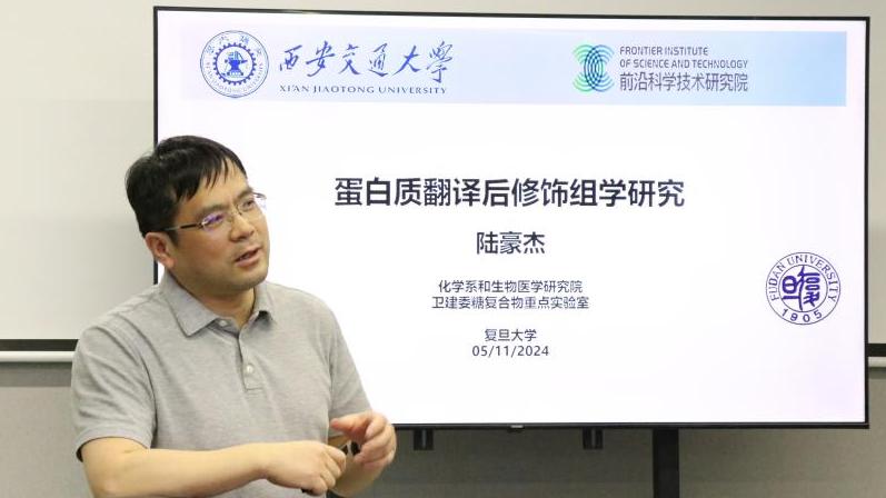 复旦大学陆豪杰教授作题为《蛋白质翻译后修饰组学研究》的报告,报告指出大部分翻译后修饰蛋白质含量低,易受到其它非修饰蛋白质的抑制和干扰,缺乏低丰度翻译后修饰蛋白质及其位点的可靠定性和定量分析方法。陆教授介绍了团队发展的基于小分子衍生和氟固相微萃取技术的4-羟基壬烯醛修饰、N-糖基化修饰的分析方法、基于Fe3O4/SiO2-SSPy磁性纳米材料的高效富集新方法、基于稳定同位素半胱氨酸代谢标记( Cysteine-SILAC)的定量分析新方法,将质谱离子化效率提高了一个数量级,选择性提高了1~2个数量级,实现了位点特异性的蛋白质泛素化定量分析。