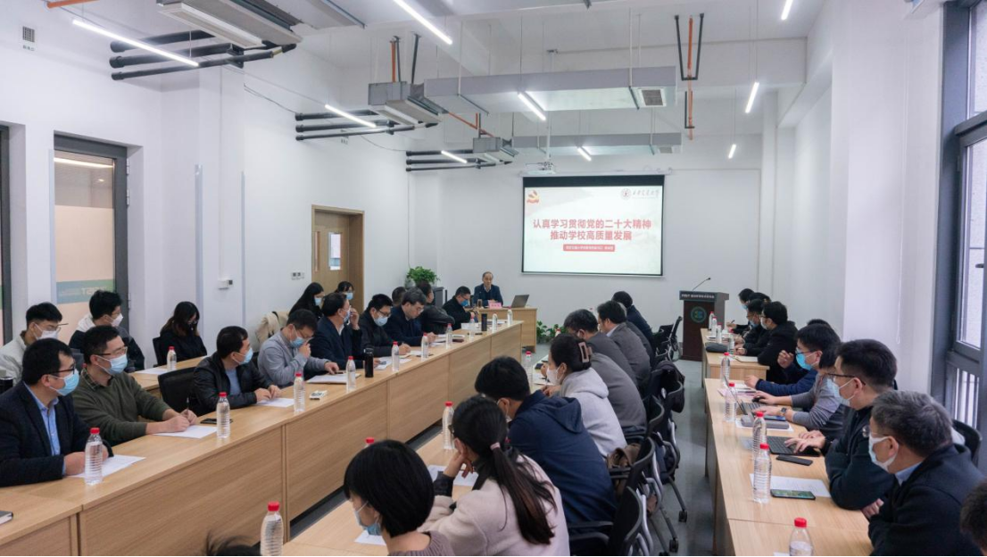 11月17日下午,材料学院、物理学院、bwin党委学习贯彻党的二十大精神报告会在创新港19号楼2055会议室举行,校党委常务副书记荣命哲作题为《认真贯彻党的二十大精神推动学校高质量发展》报告。他强调,党的二十大精神思想深邃、内涵丰富,学习宣传贯彻党的二十大精神是当前和今后一个时期学校首要政治任务,全校师生员工要从党的二十大报告中汲取前进力量,以推进学校高质量发展的实际行动把党的二十大精神落到实处。会议由bwin党委书记刘莹主持。
