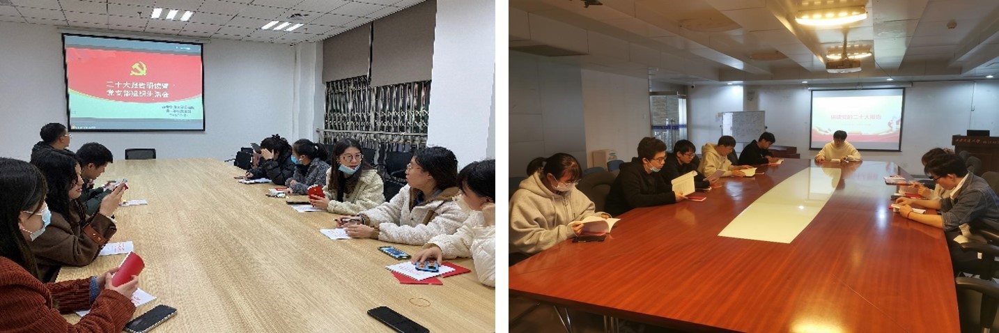 为准确理解党的二十大报告原义,提升学习成效,硕士一年级、二年级、三年级和博士一年级学生党支部采取集中学习与讨论相结合的方式开展活动,结合自身科研学习生活交流探讨,党员们踊跃发言讨论,畅谈感想体会。